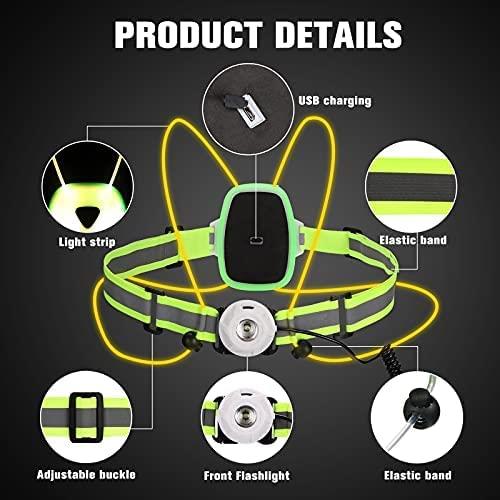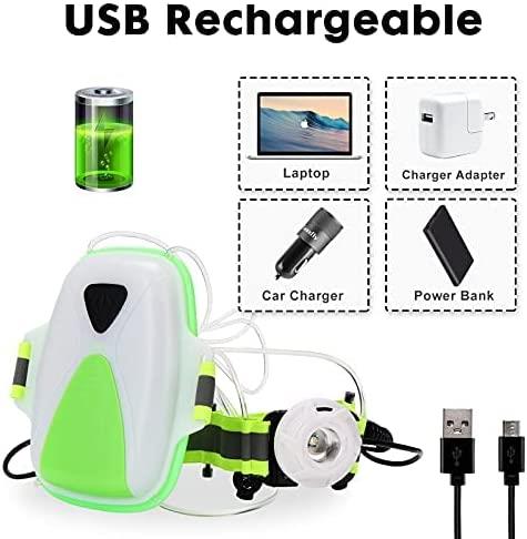Foco delantero: la brillante lámpara frontal ilumina tu camino al caminar, montar en bicicleta o correr por la noche para evitar riesgos de tropiezos.