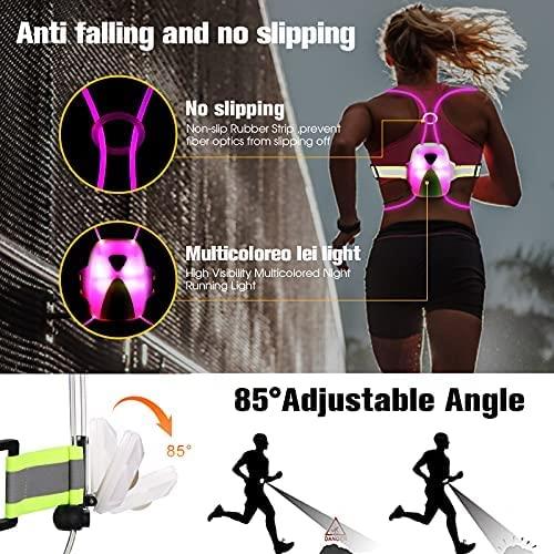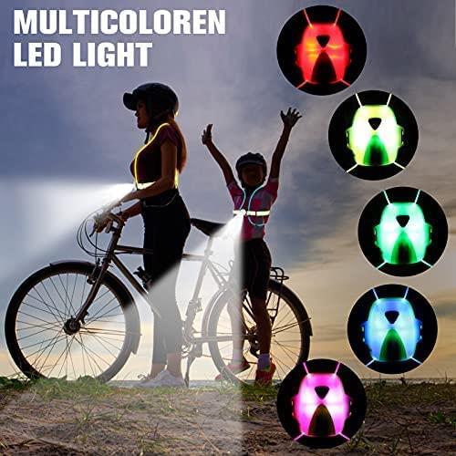 Varios colores en un chaleco: cambia entre 6 colores sólidos superbrillantes: rojo, azul, morado, rosa, verde y naranja. Los modos son fácilmente seleccionables con solo pulsar un botón, fácil acceso si estás caminando, corriendo, ciclismo, montar a caballo o incluso montar una motocicleta. Tres opciones de luz: ciclo de arco iris, pulso arco iris, estroboscópico arco iris, apagado