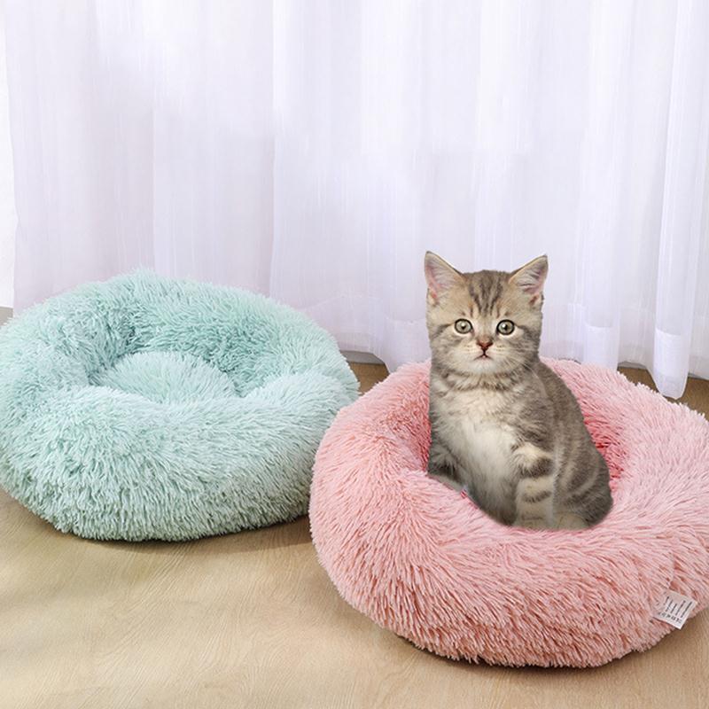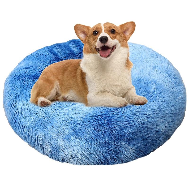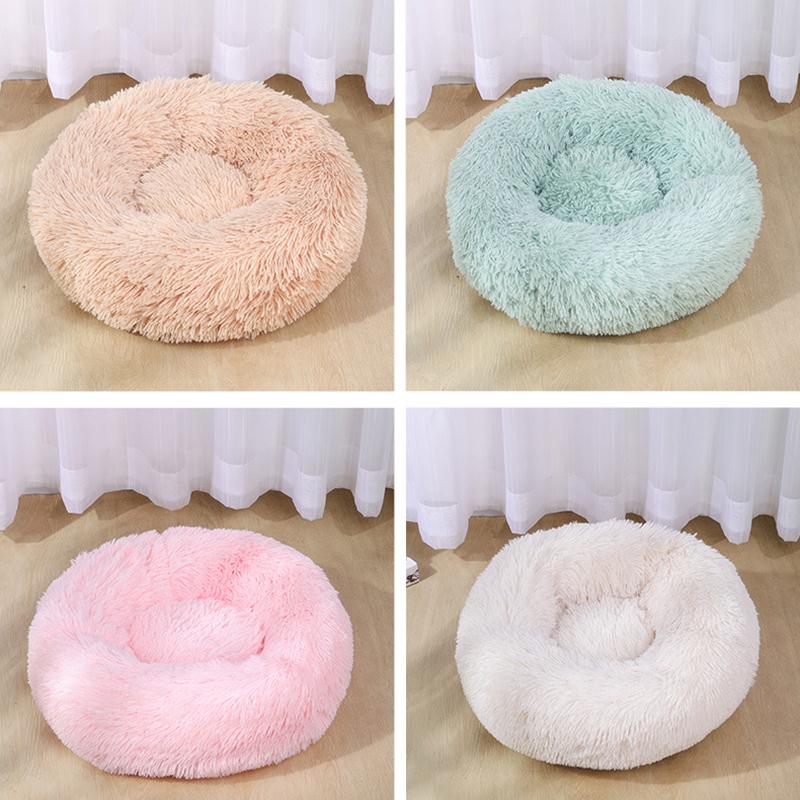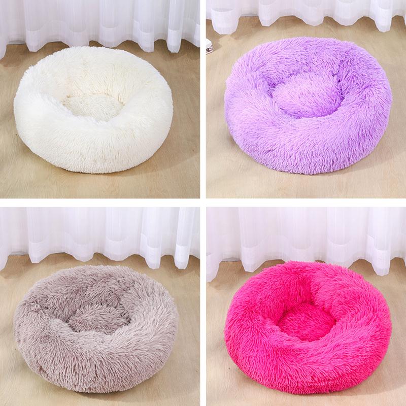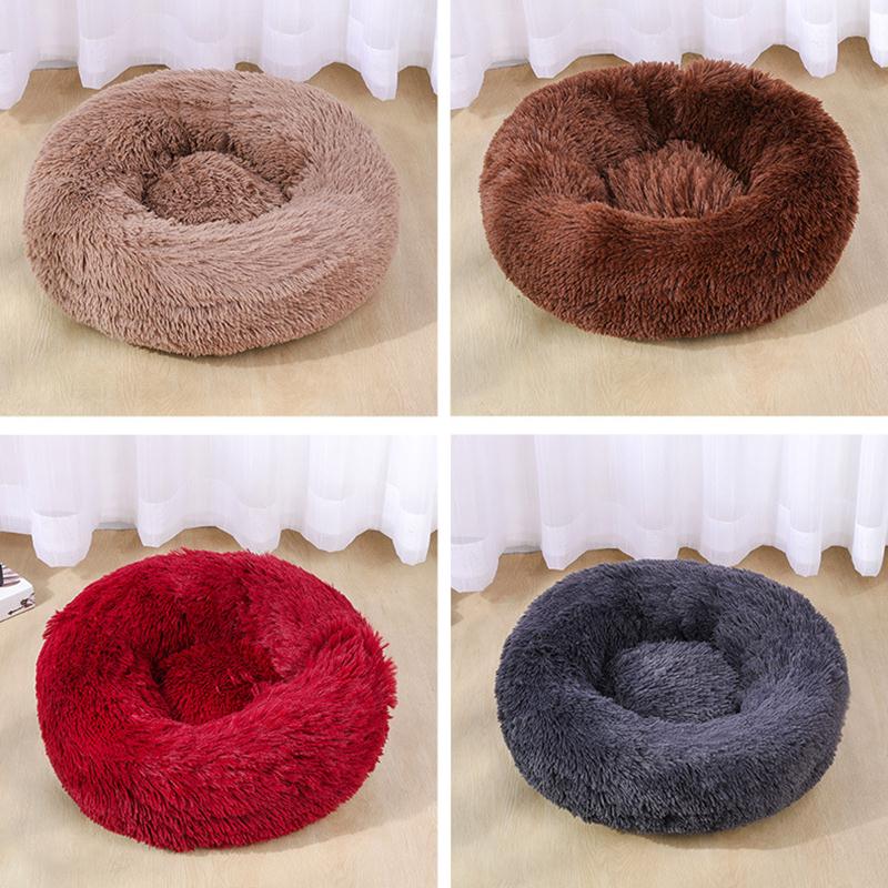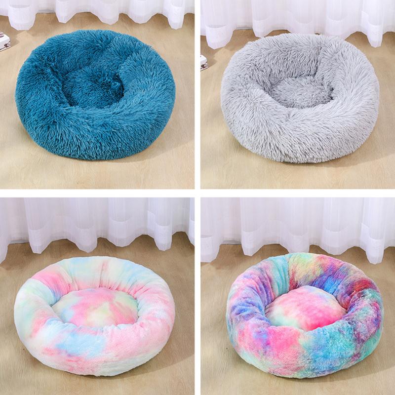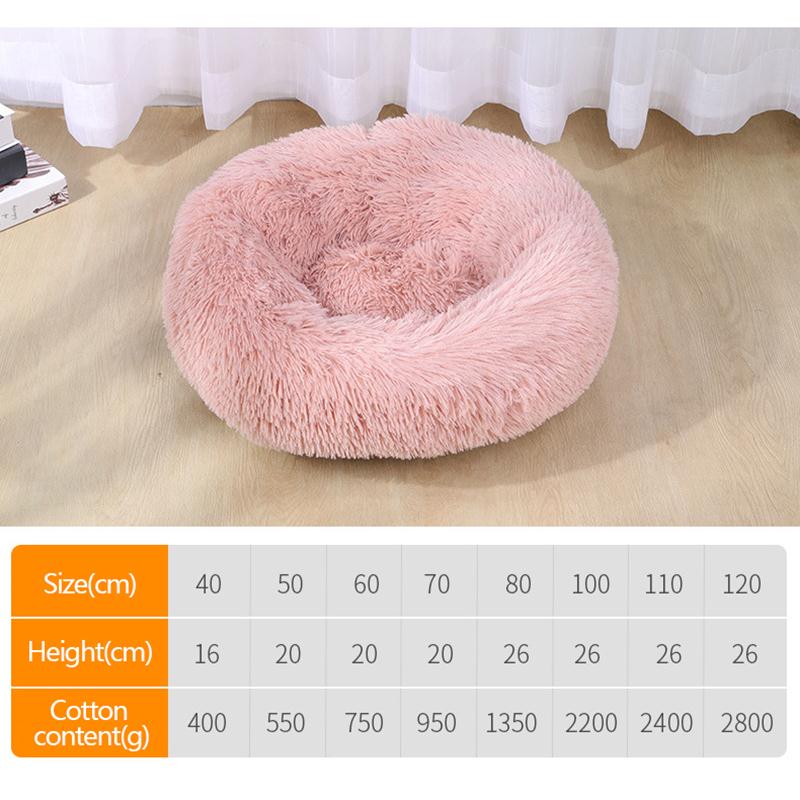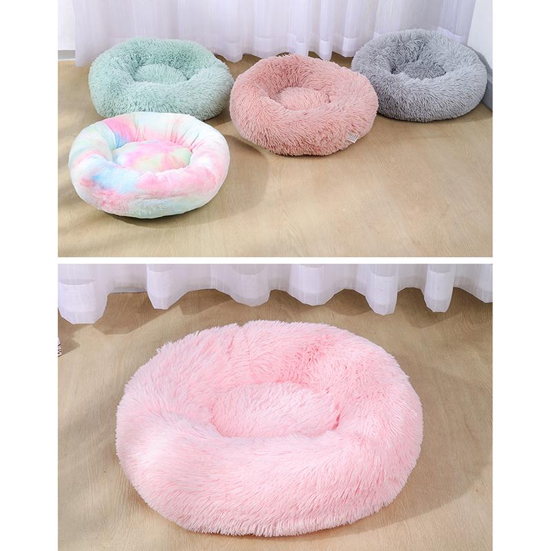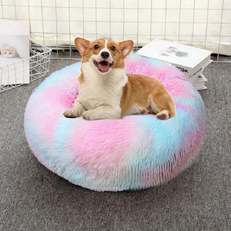 The thick pet bed is perfect for any type of cat or dog. The round dog bed offers pets their own place to roll up and relax.