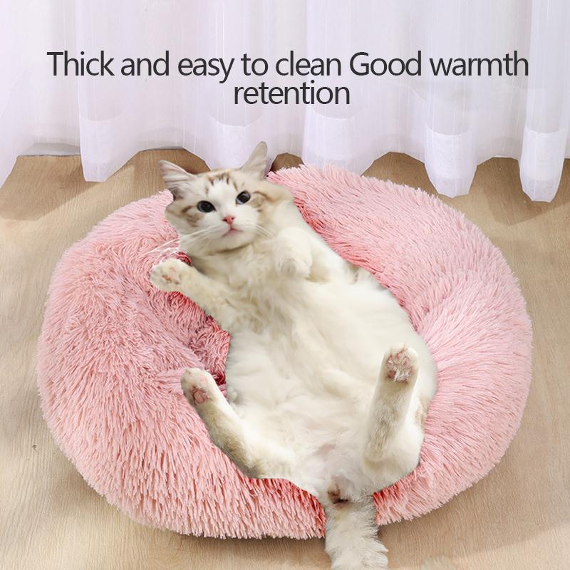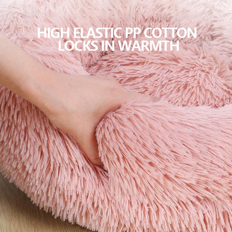 【Better Sleeping】: Thanks to the round shape, our fluffy donut shaped puppy bed is ideal for pets who love to curl up. The raised rim creates security and head support, while the super soft filling offers joint and muscle pain relief, let your pets sleep well.